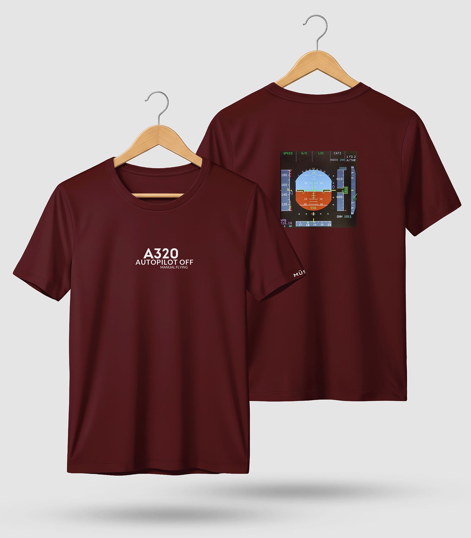 A320 Autopilot off T-shirt with A320 PFD display on the back and text on front