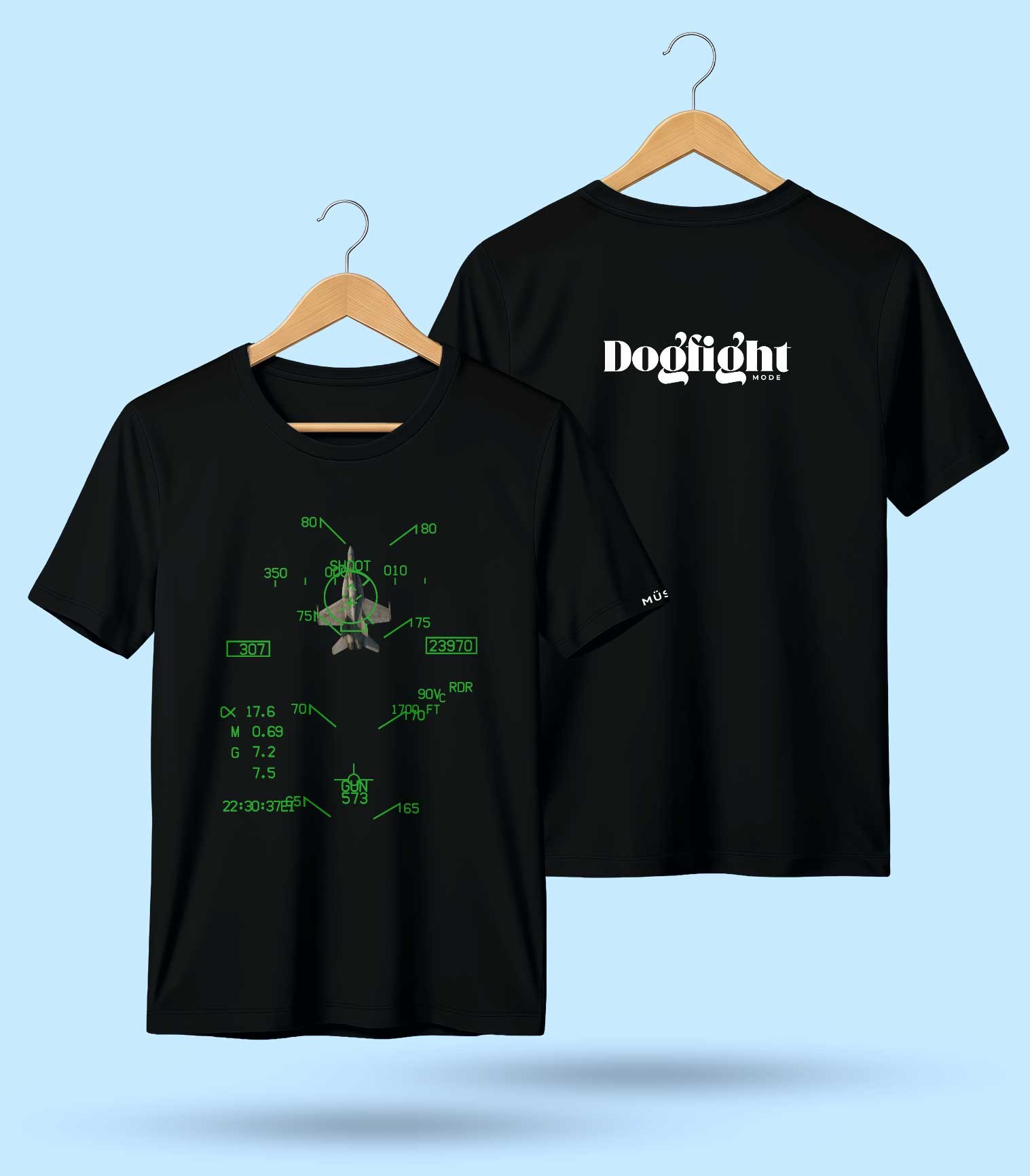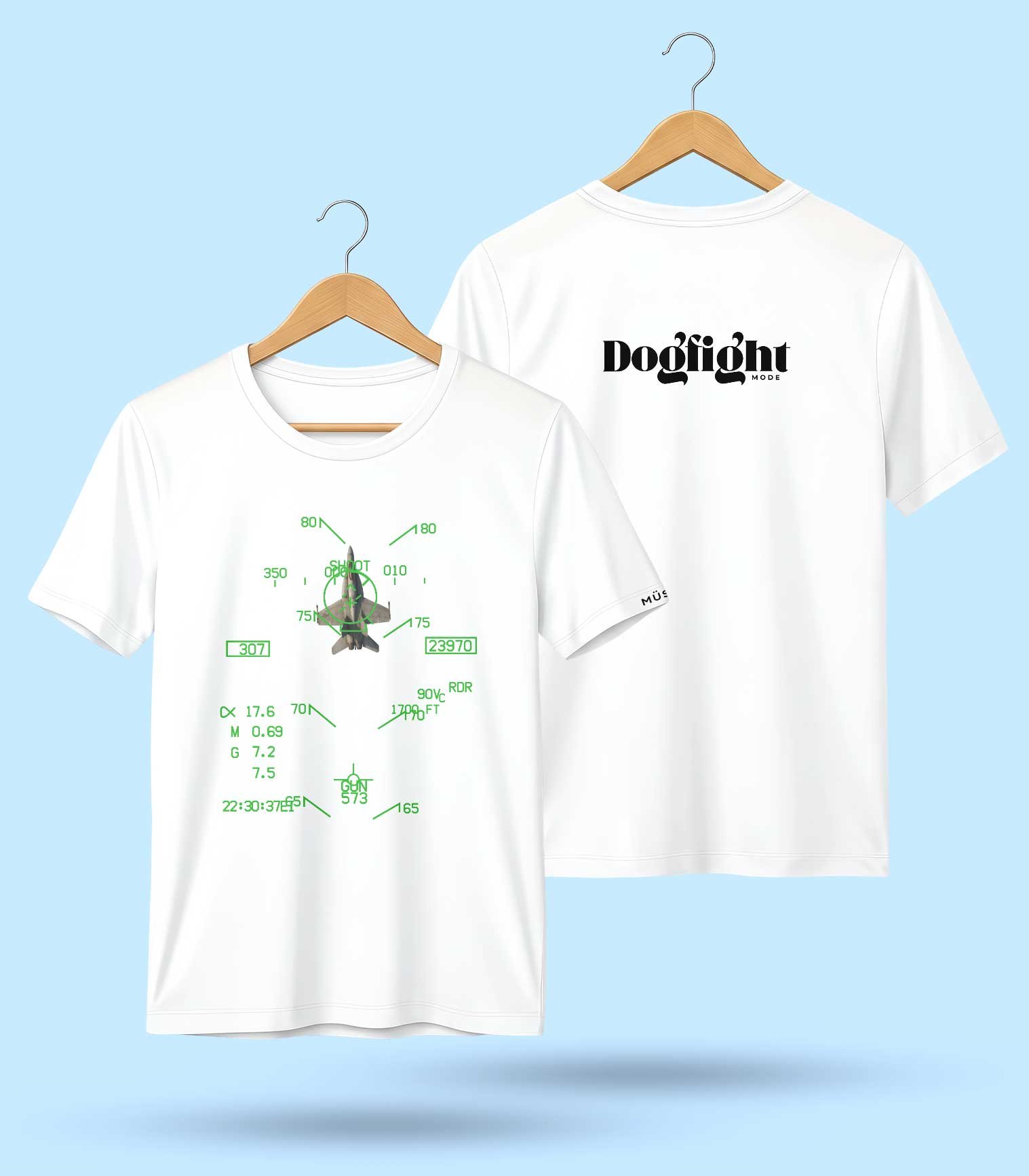 Dogfight Mode (Basic Fighter Maneuver) is when 2 Fighter Aircraft came to fight in close range visually using guns only or guns & short range IR missiles, a very thrilling fight that requires a swift skill & fitness to survive the Gs & the strong enemy that is willing to kill you in a split second, Usually when you have him in the Gun circle it’s a game over for him like in that T-shirt Design that poor F18 is a dead fighter by another F18!