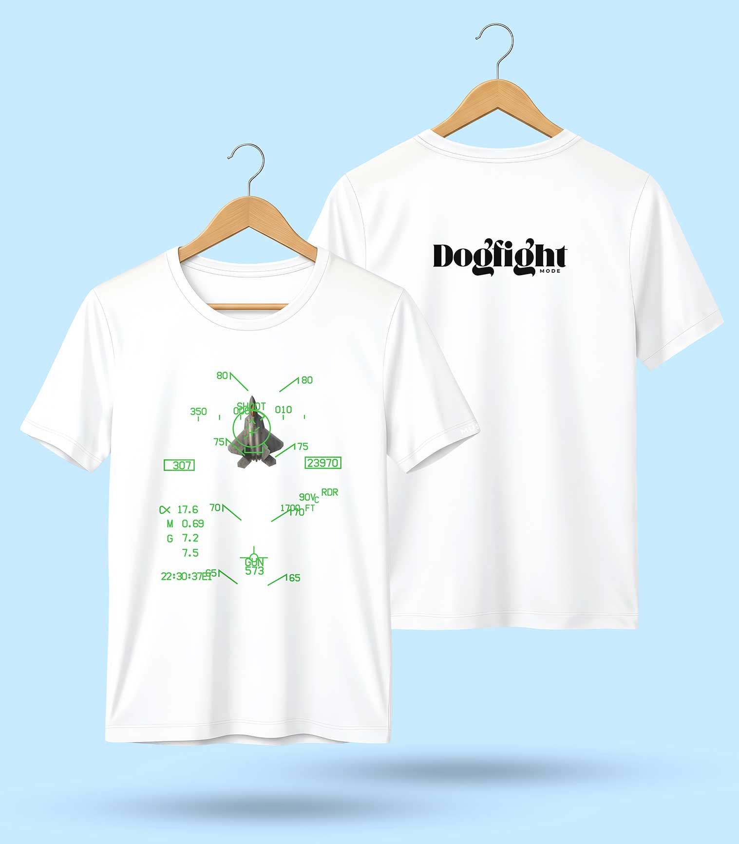 Dogfight Mode (Basic Fighter Maneuver) is when 2 Fighter Aircraft came to fight in close range visually using guns only or guns & short range IR missiles, a very thrilling fight that requires a swift skill & fitness to survive the Gs & the strong enemy that is willing to kill you in a split second, Usually when you have him in the Gun circle it’s a game over for him like in that T-shirt Design that poor F22 is a dead fighter by another F18 which is really hard (happened in reality before but require true skill as the F22 is considered to be the best Dog fighter!